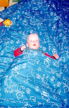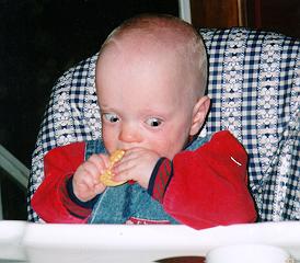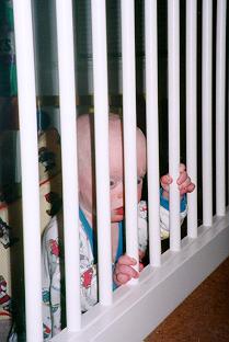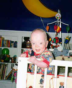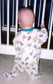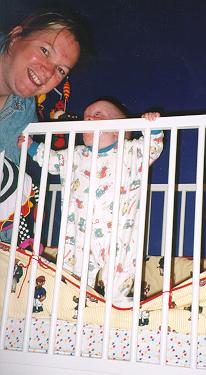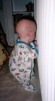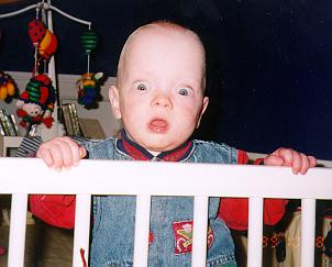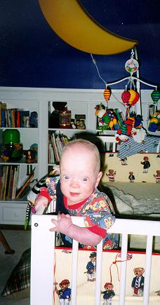 Oct 18, greeting Mom and Dad in the morning by Standing in his crib