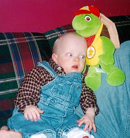 he weighs in at about 15 1/2 lbs and is crawling on all 4's (no longer