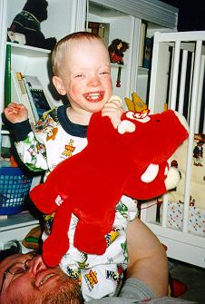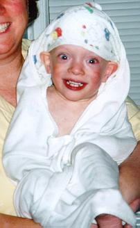 I suppose you might say that this image is as a result of his parents being mean, but we thought he looked so much like a mischievious Elf, with his ears forward like this that we had to take a picture. This is post-bath, wrapped in a towel. . Check out those teeth!