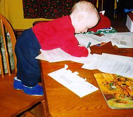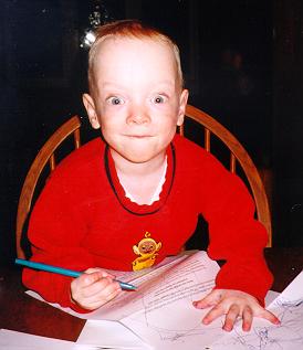 Sullivan takes great delight in drawing now, and when he colours, he is actually trying to colour things on the page, not just simply scribbling! Doesn't he look grown-up now!