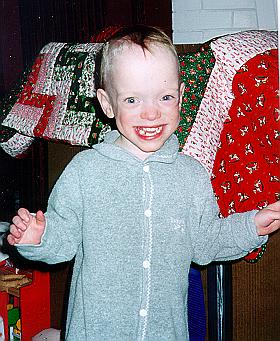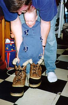 Showing off the slippers Aunt Bamm sent for Christmas! .