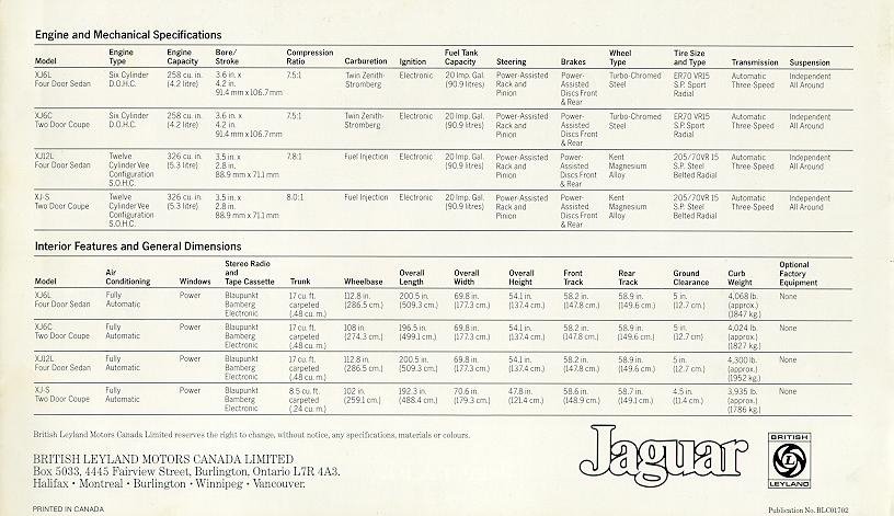 Jaguar XJ & XJS (197?, Canada)