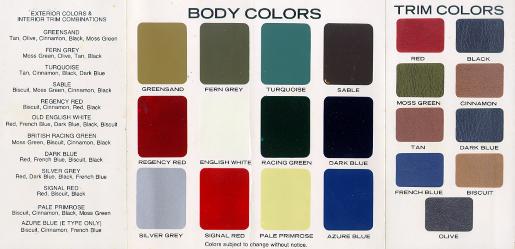 Colour Chart for 1974 Models