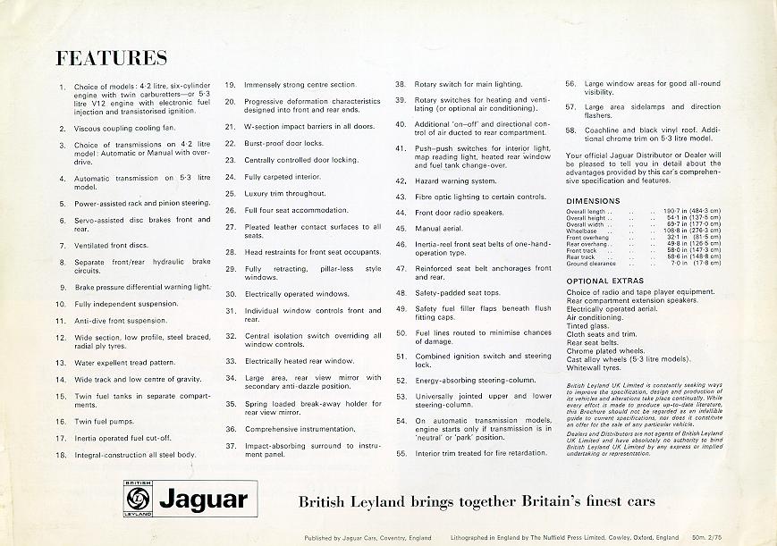Jaguar XJ 4.2C and XJ 5.3C Models (February 1975, UK)